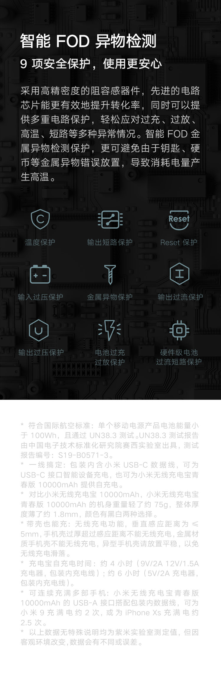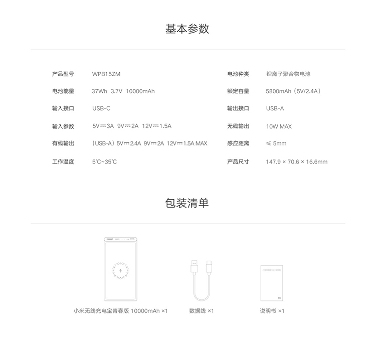 一直相信小米品牌,全家都用小米手机,家里买了很多小米的产品,电视,电压力锅,台灯,温湿感应器等,忠实米粉,充电宝很轻,方便携带,自带一条type-c转USB的数据线非常方便,充电快,电容量大,而且支持无线充电功能,做工很有质感,抗摔能力也表现不错,非常值得推荐购买