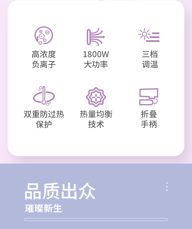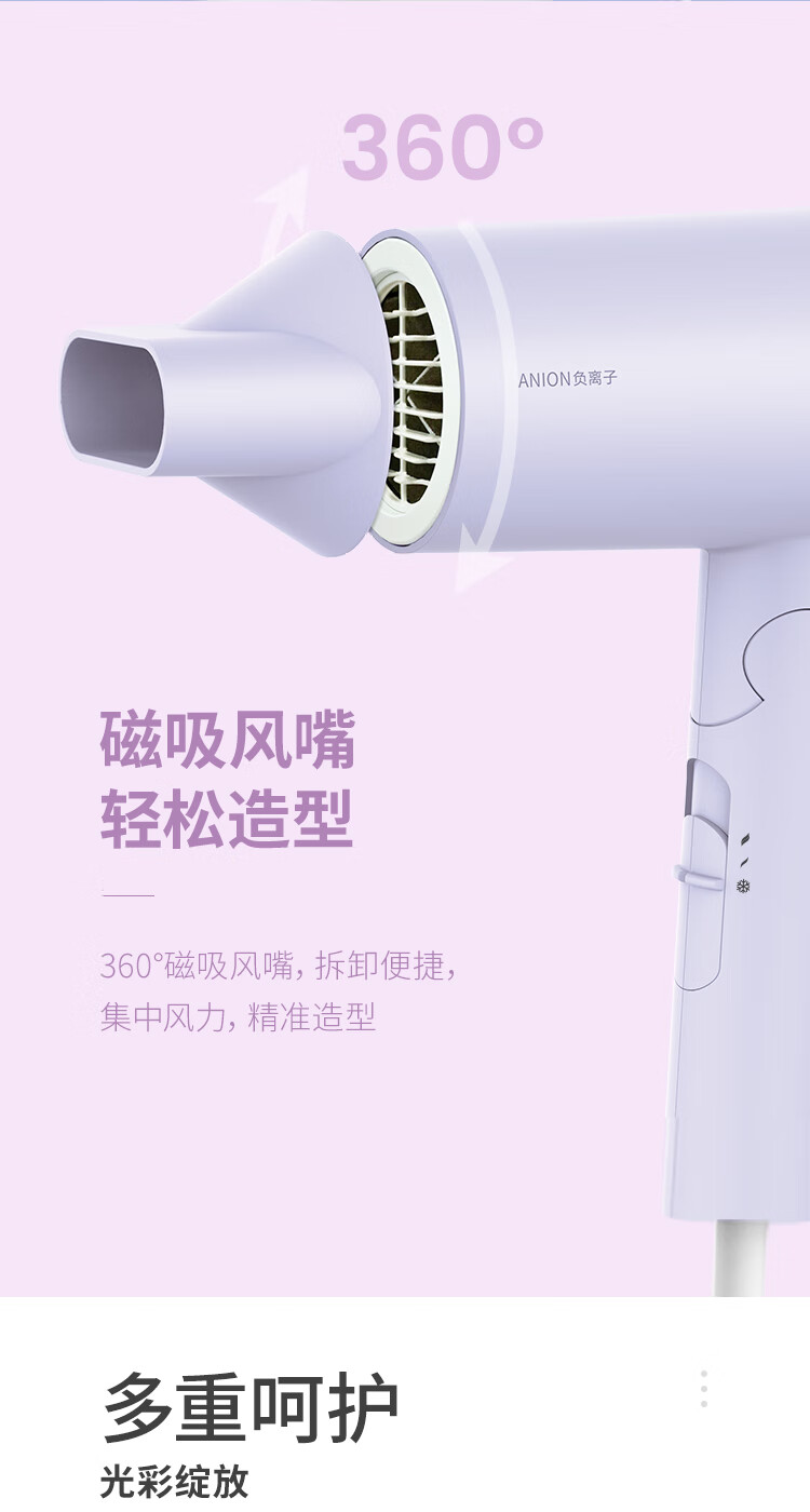 太喜欢这个吹风机啦,家用还是旅游出外携带都方便,而且噪音很小,吹干效果不会太干。而且主要是功率够用了。大品牌值得信赖。朋友推荐了确实没错。