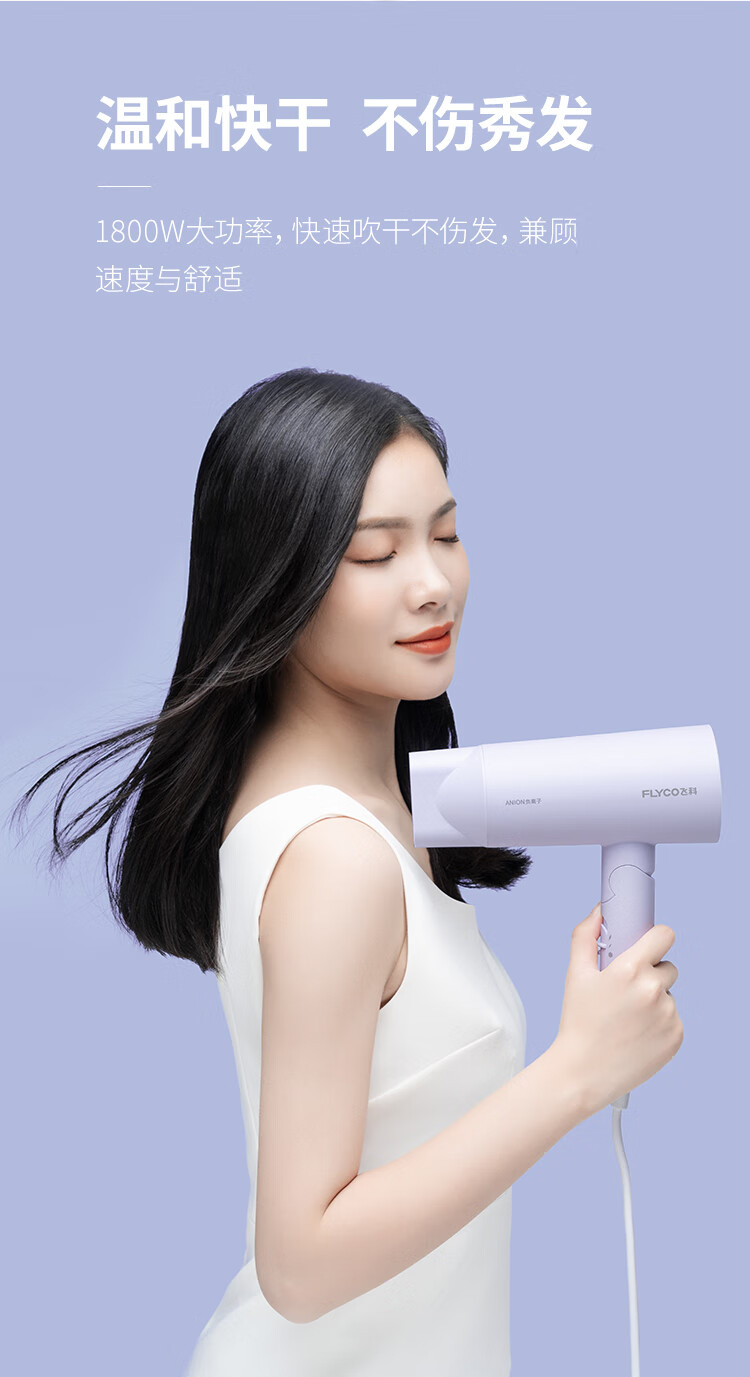 飞科大品牌,家里的吹风机剃须刀都是飞科。全家人都很喜欢,值得信赖。这款吹风机太好了,三两下就吹干了,吹干效果明显。噪音小,吹起来几乎没有声音外形小巧可爱,适合长途旅行,方便携带。如果搞活动的时候购买更加划算