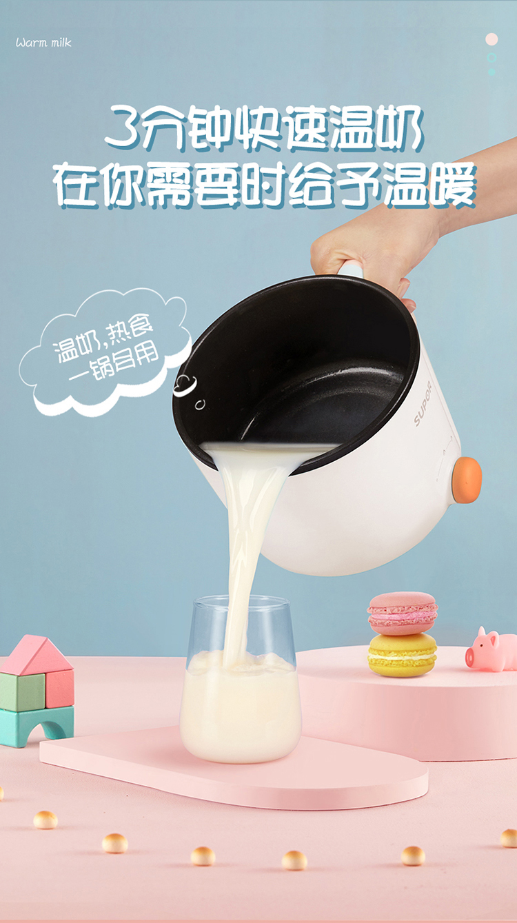 可以外观可爱 适合夜晚加餐,开锅快,内带涂层,可以炒菜,上面带笼屉 可以热馒头热包子 非常方便 质量很好,感觉非常高档。