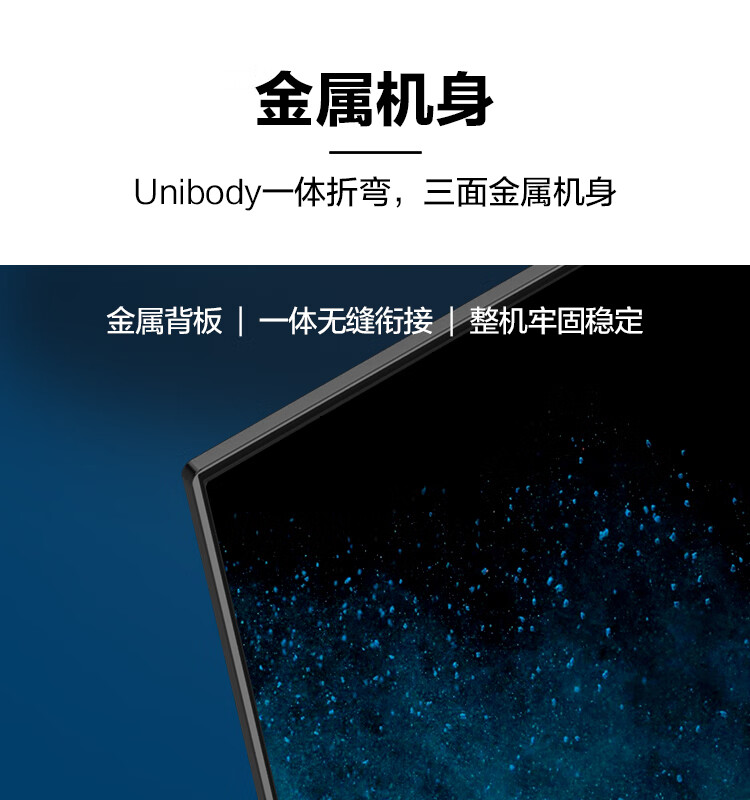 外形外观:外观漂亮,轻便,超薄的机身和超窄边缘使观看者感觉可视屏幕大。