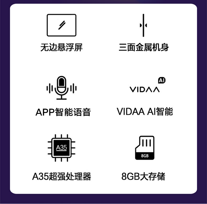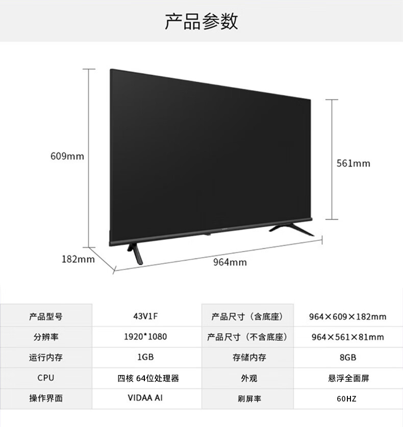 外形外观:海信VIDAA50V1A50英寸4K高清海信1.5+16GHDR教育电视超大高清超薄屏幕。
