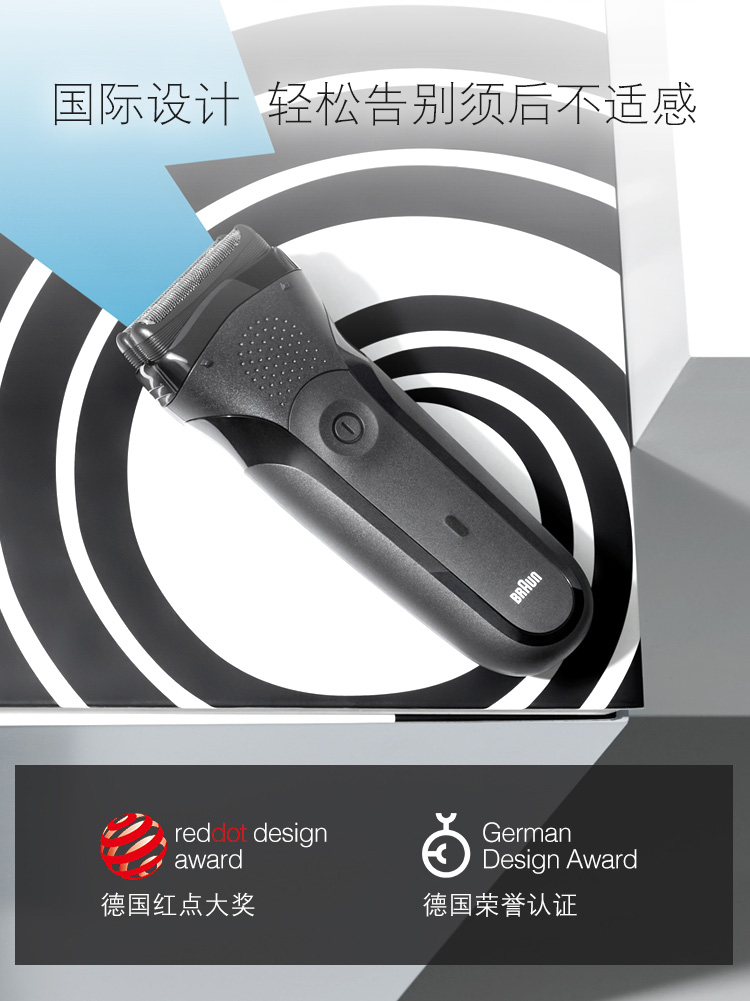 这款博朗(BRAUN)电动剃须刀全身水洗往复式刮胡刀德国进口三刀头3系3000s温和剃净确实是蛮不错的哟,这款博朗剃须刀关注很久了,大品牌做工方面没得说!手柄两边是橡胶做的,既防滑又美观!这款是三刀头的,声音方面可以接受,不是很大,振动很足,拿在手里非常的有手感,沉甸甸的,说明博朗用料扎实,还有电量指示灯,充电一目了然,电量也很耐用,充满可以用很久,而且充电非常快,这点是我最喜欢的!剃胡须剃得很干净,真的是物美价廉!物超所值!