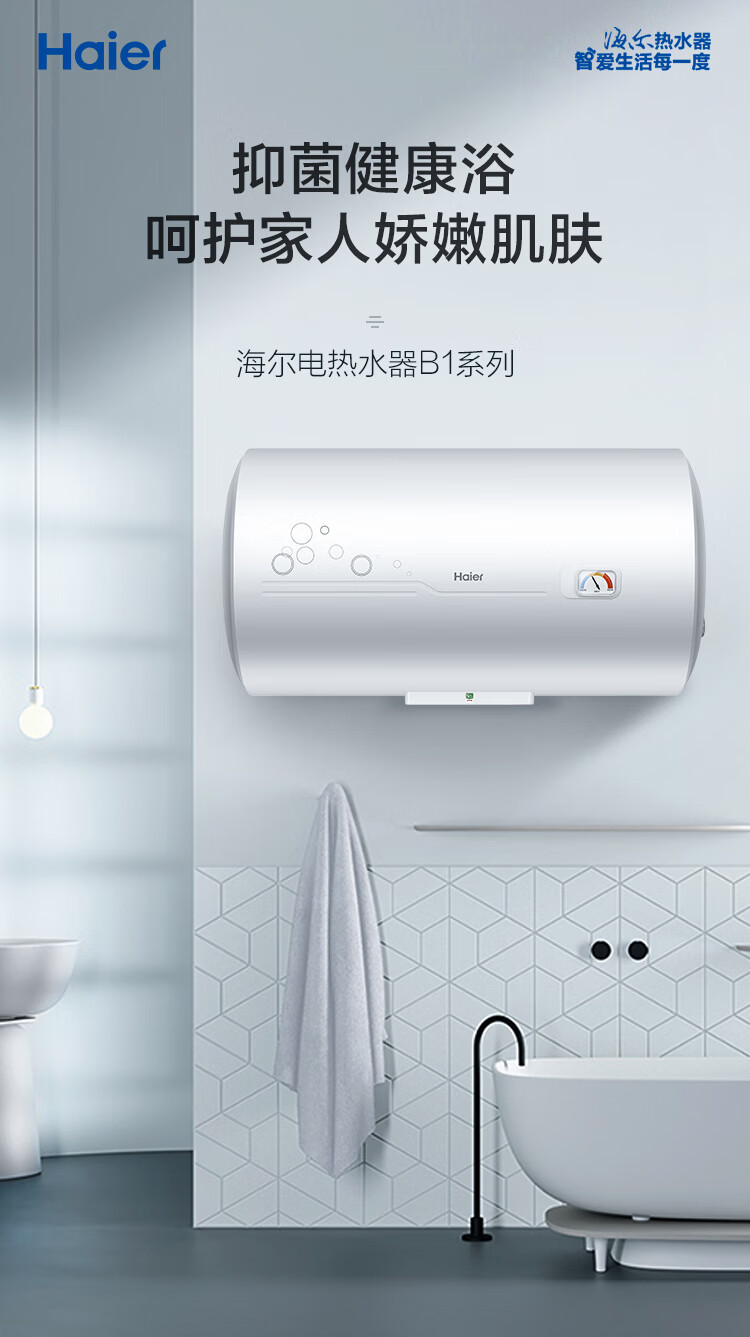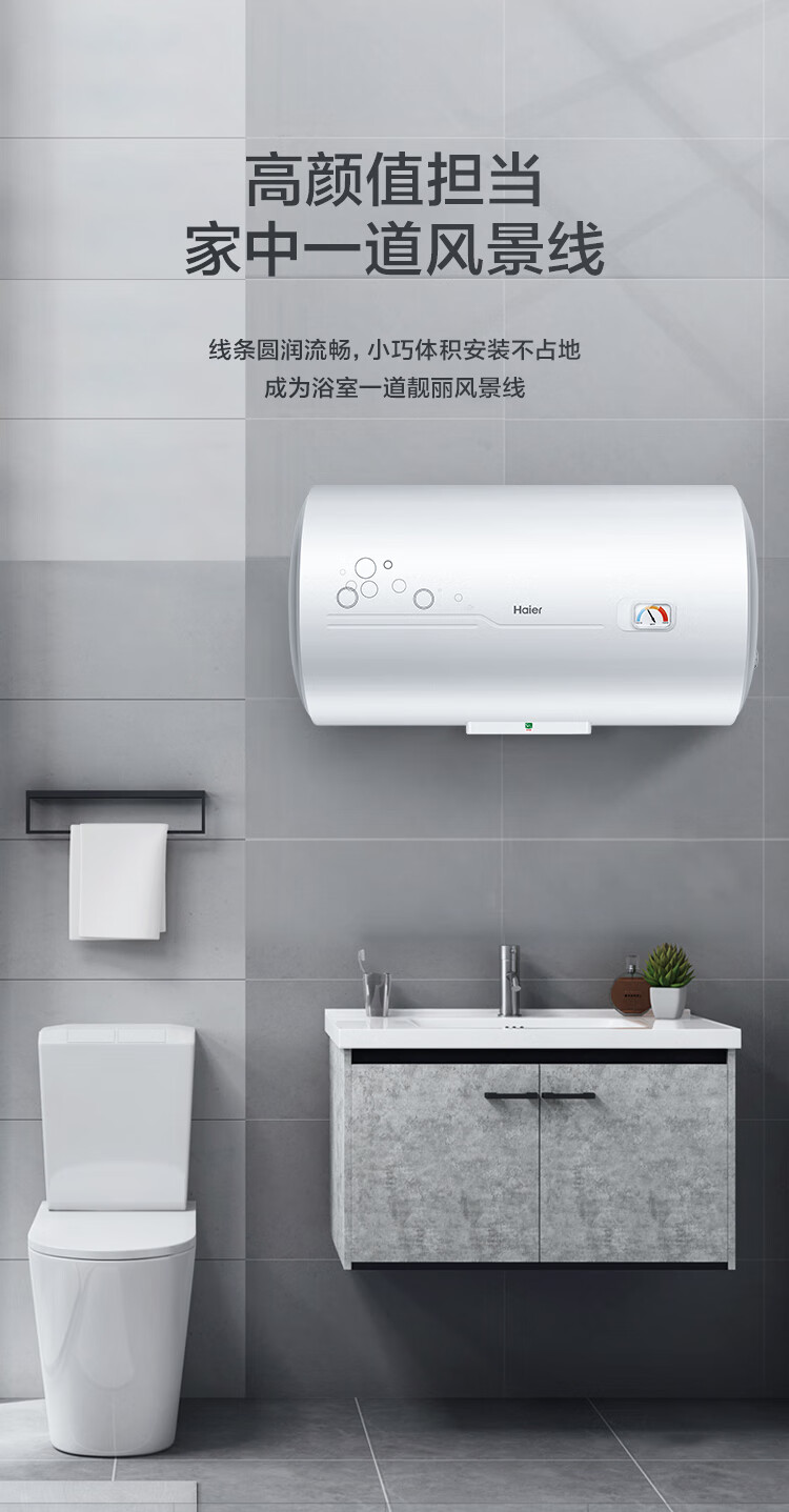 这个是海尔的电热水器,它的外观美丽时尚,制造工艺一流,使用很好的材料,加热速度很快,保温很不错,功能齐全,很好用,物流送货很快!