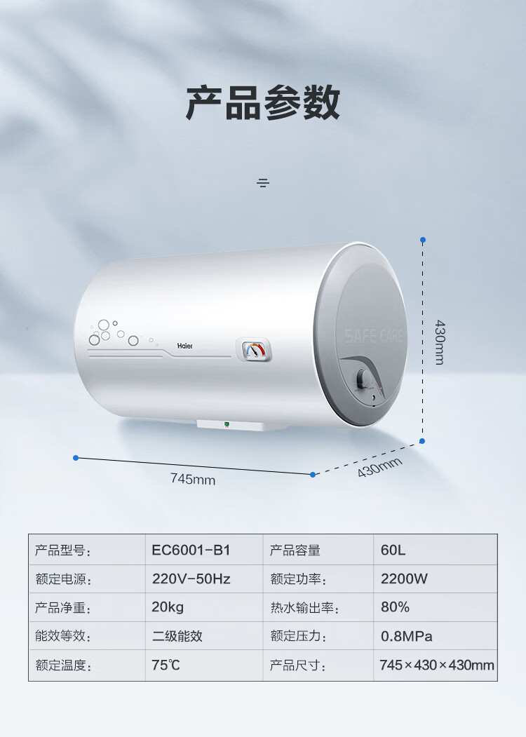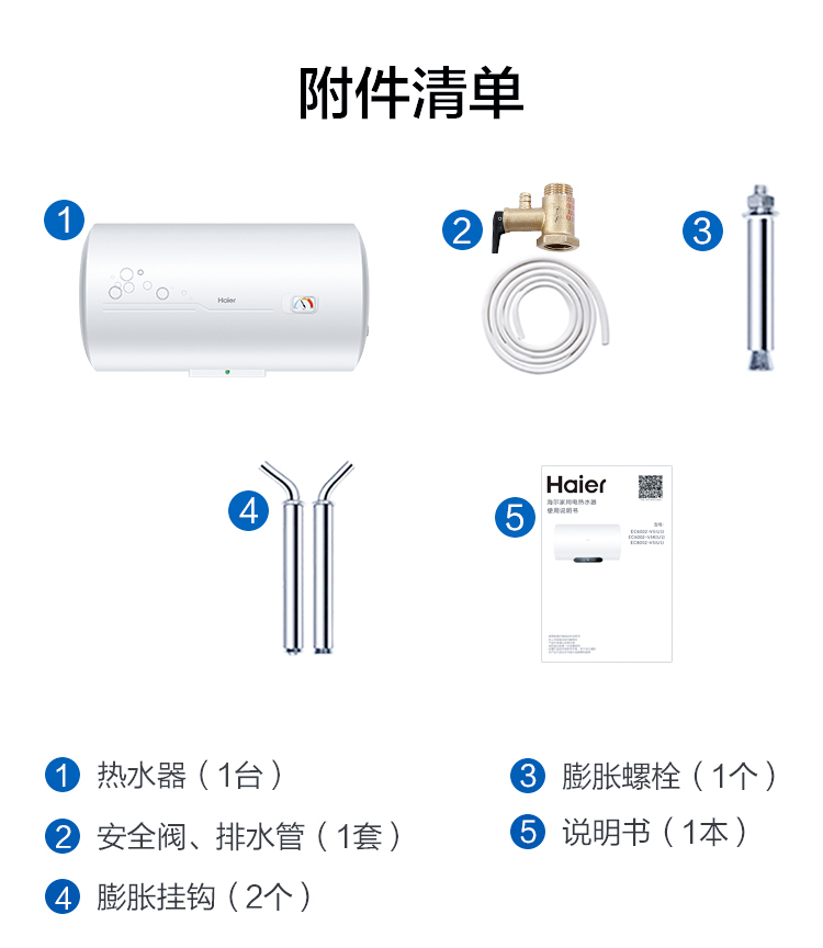 热水器今天收到了,海尔电热水器全国销量第一.上门安装师傅已经预约,安装服务都是提前电话联系。热水器是二级能效可以说非常节省用电,可以半胆或整胆加热,更加节能。体积小,功能强大,出水断电安全系数高,节能并双重抑菌。京东物流送货快服务态度很好,很满意,五星好评。
