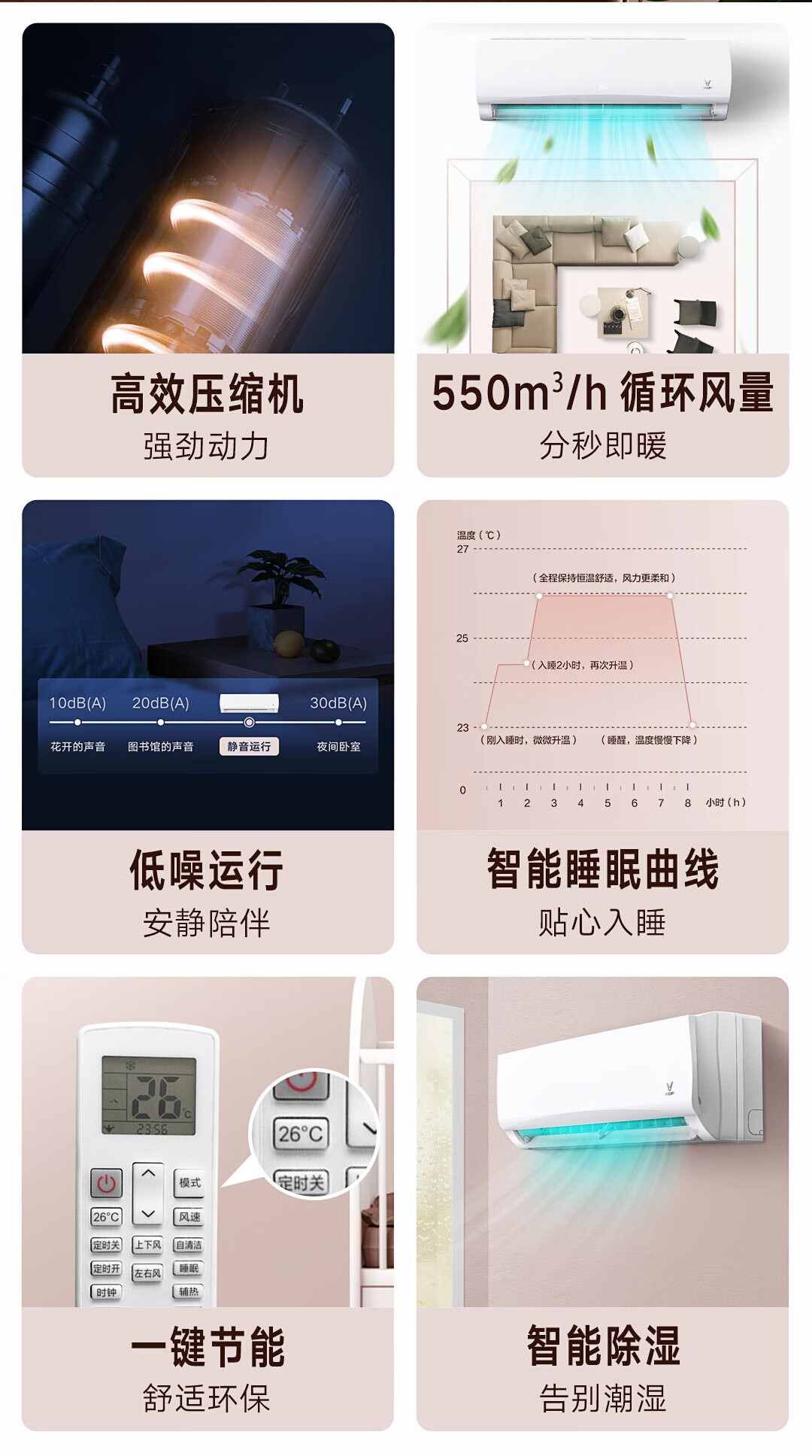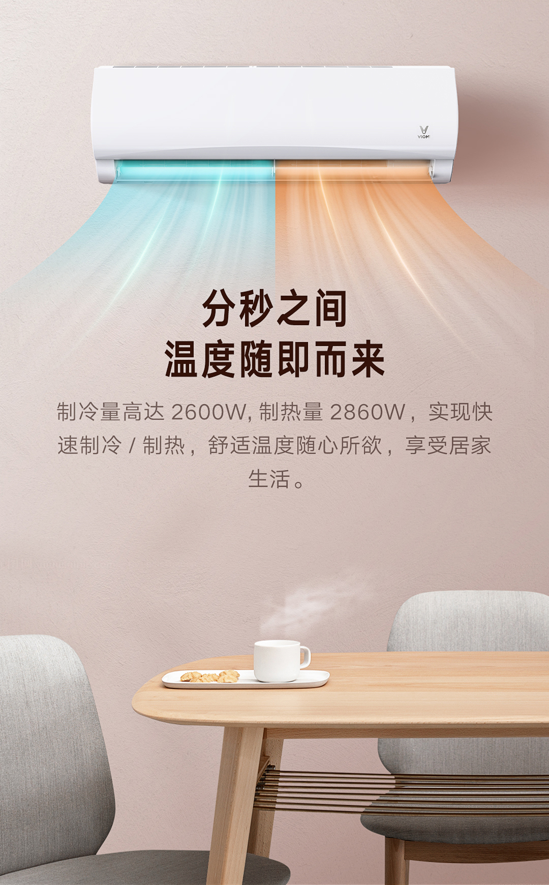 • 云米(VIOMI)1匹 定频 冷暖 iCool 1F 制热取暖器暖风机 智能除湿 壁挂式卧室空调挂机 KFRd-26GW/Y4PF2-D3