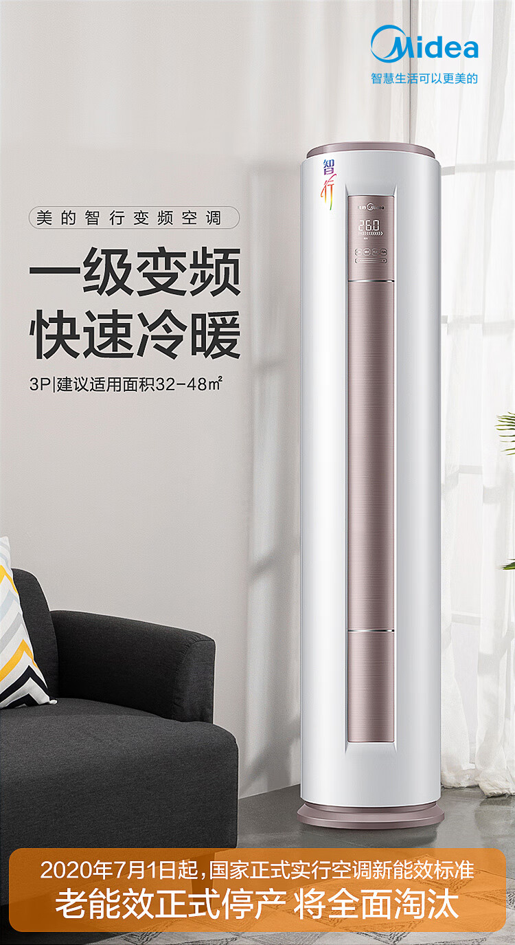 • 美的(Midea) 3匹智行 一级能效变频冷暖 客厅圆柱 空调立式柜机 KFR-72LW/BP3DN8Y-YH200(B1) 线下同款