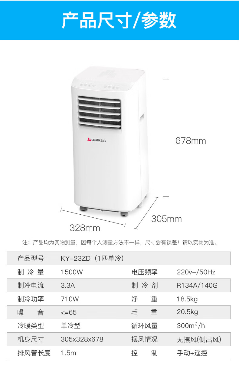 • 产品名称:志高(CHIGO)1匹单冷移动空调 家用免安装一体机立式小型厨房空调KY-23ZD