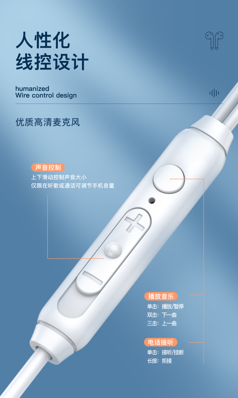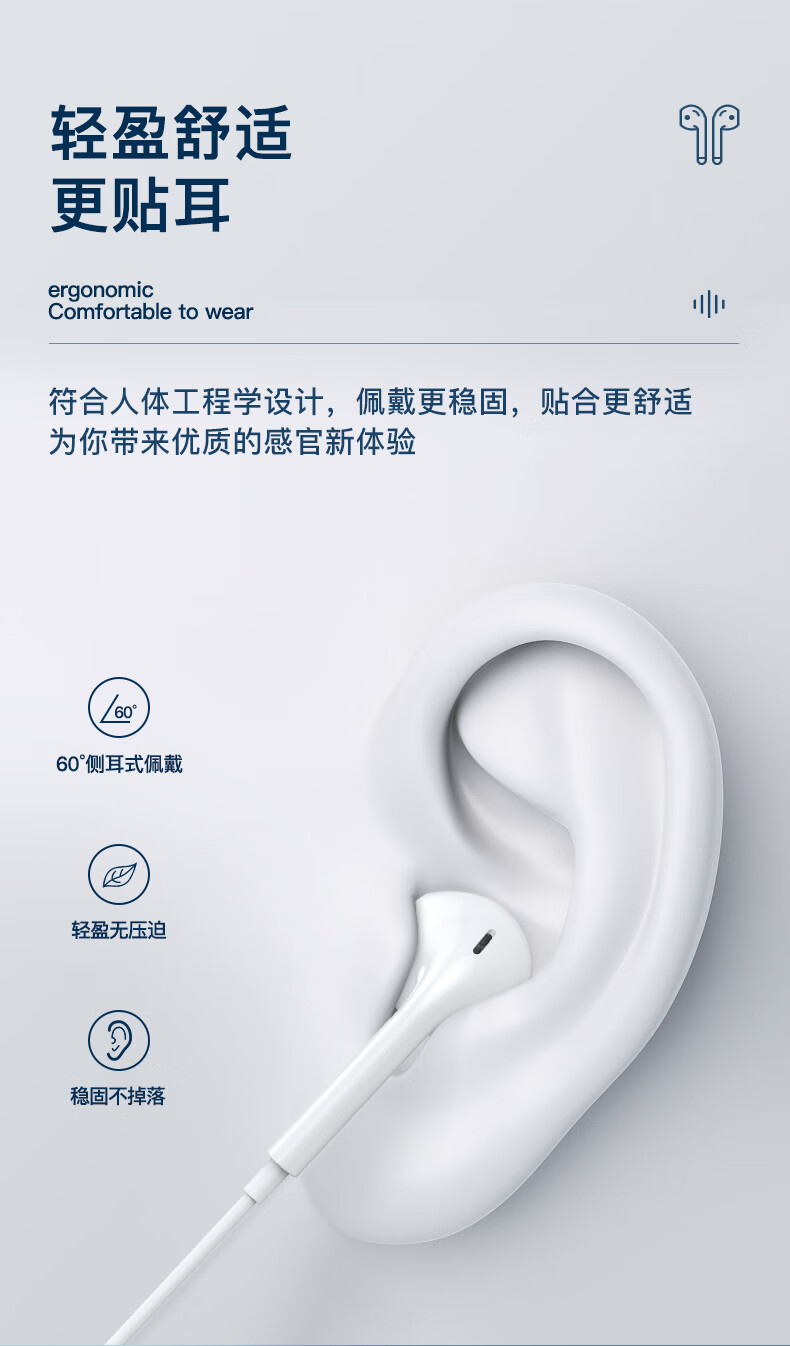 • 佩戴方式:有线入耳式