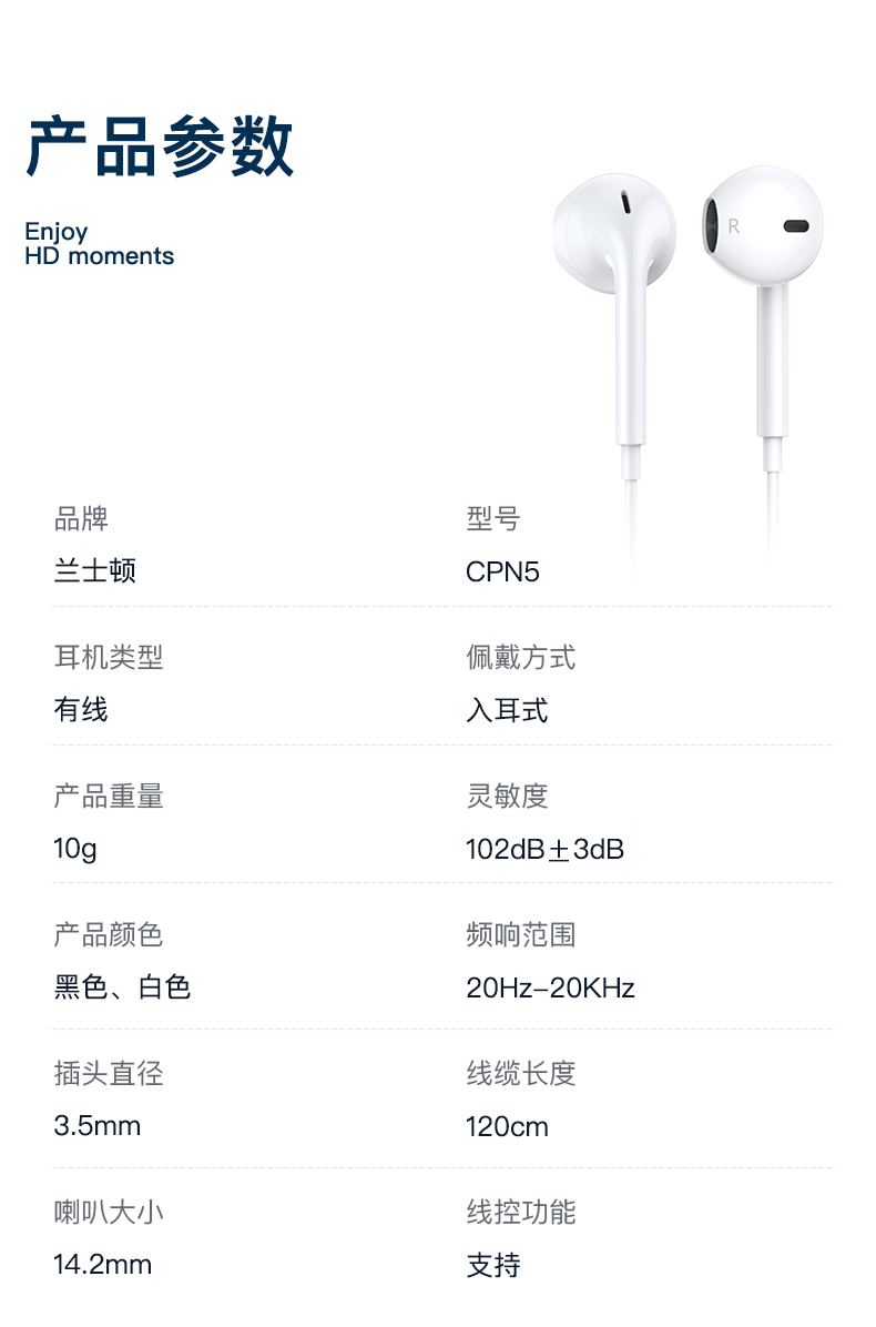 • 产品名称:兰士顿 CPN5耳机入耳式有线调音带麦 vivo华为荣耀oppo小米通用手机K歌吃鸡游戏耳麦 白色