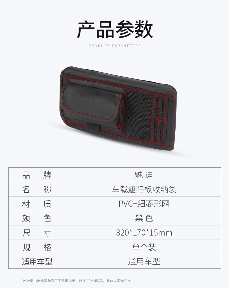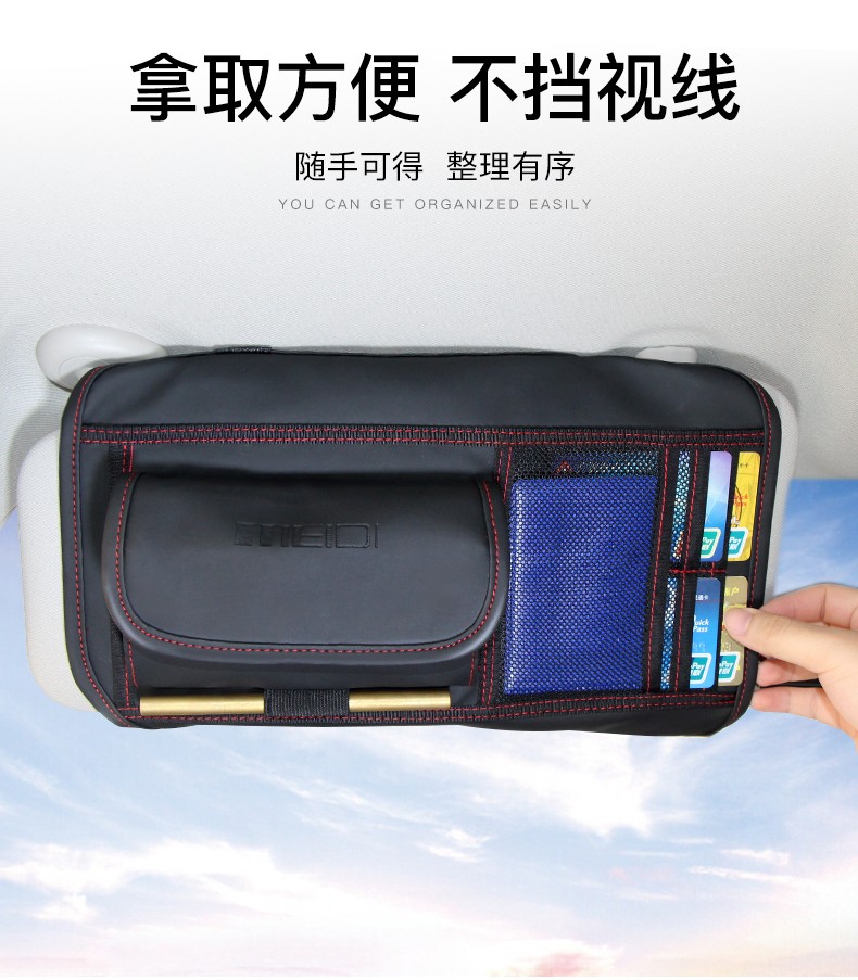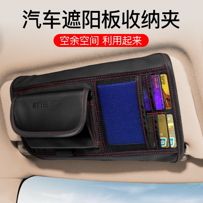 • 产品名称:魅迪(MEIDI)车载收纳袋 汽车遮阳板收纳夹 多功能汽车遮阳挡收纳包置物袋车内饰品 前遮阳板收纳袋 黑色