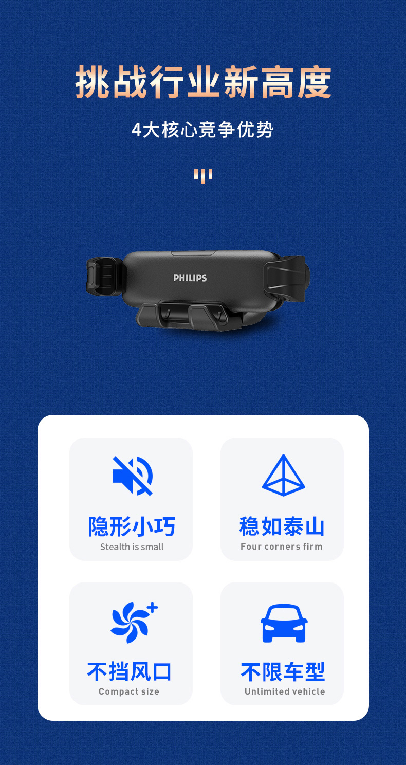外形外观:外形特别好看,外观高端大气上档次,镜面漂亮,飞利浦大品牌,高端大气有面子。 稳定度:稳定度非常好,放上手机自动稳固,特别结实耐用。 结实度:特别结实,做工扎实,大品牌值得信赖。 使用难易:非常容易使用,放上手机自动收紧,特别方便,取出来手机特别方便,一键取用。不放手机的时候占用空间特别少,值得推荐!