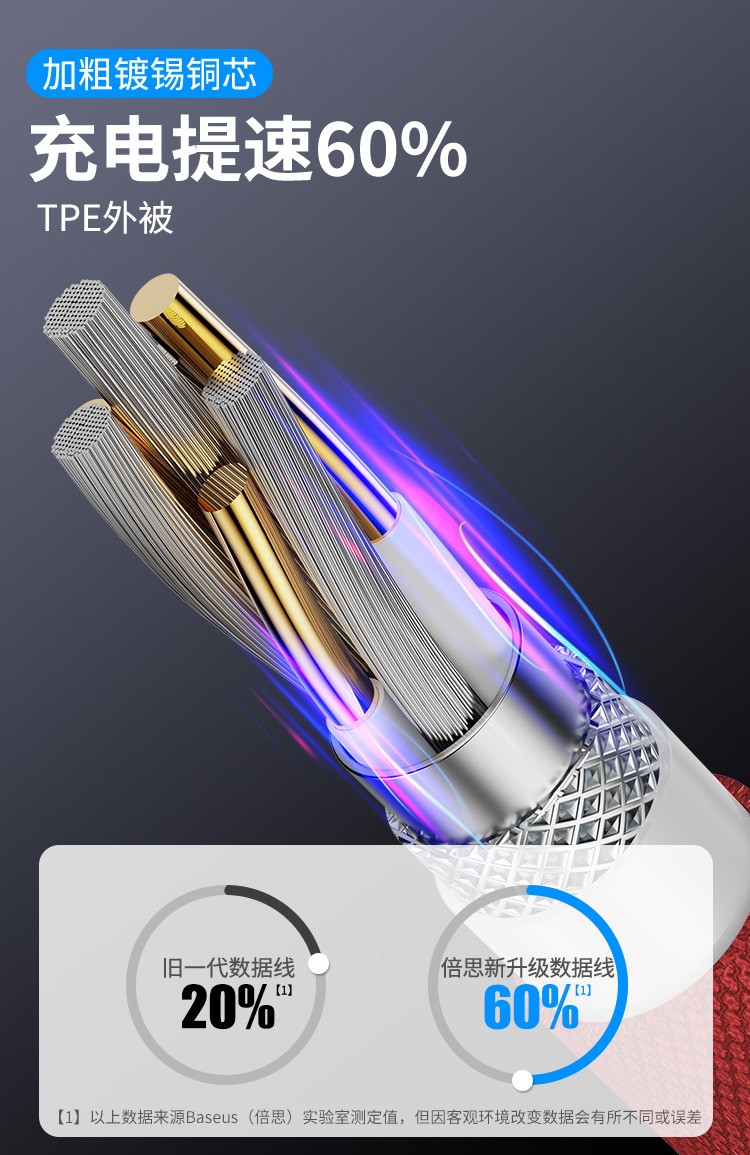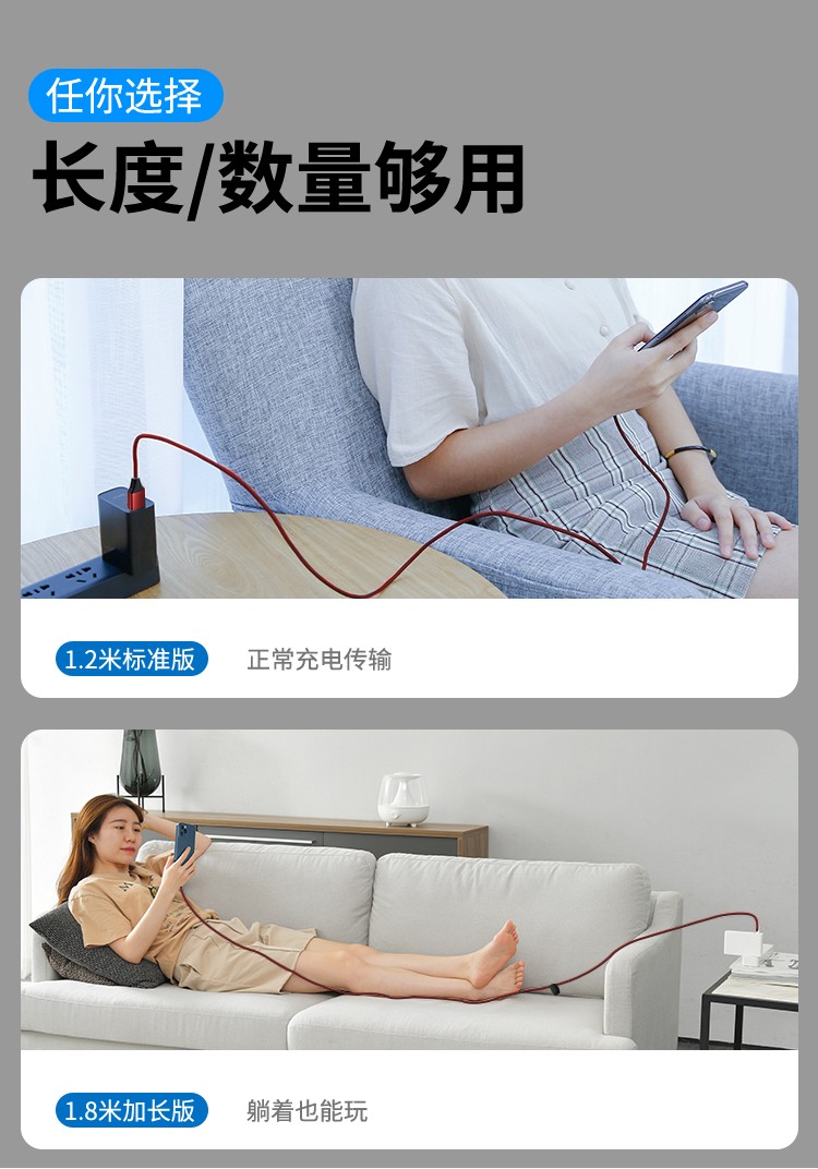 倍思家的充电线真的是物美价廉,编织编织绳的设计使得线比较结实,不会轻易就磨损,而且外观也很好看,有多种颜色可供选择,好看不单调,同时也方便收纳。最重要的一点是不伤手机,也不会像一般的充电线一样会显示配件不符,出现无法充电的情况。总之就是你值得拥有