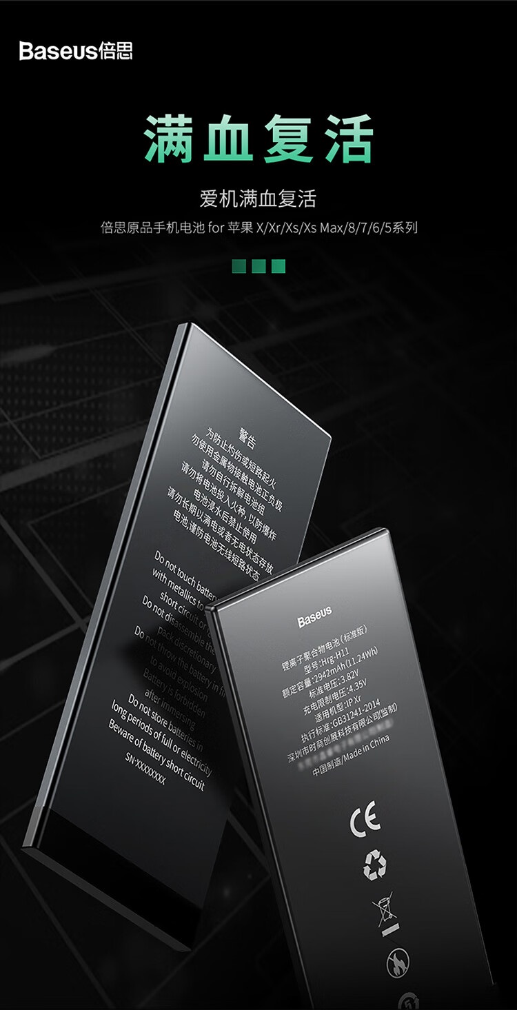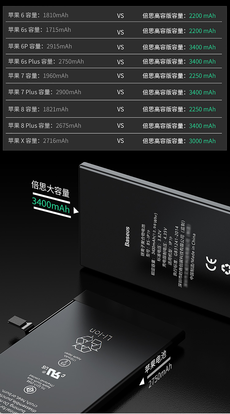 • 产品名称:倍思(Baseus)苹果iphonex手机电池 内置超大进口高容量 续航游戏直播更换3000mAh