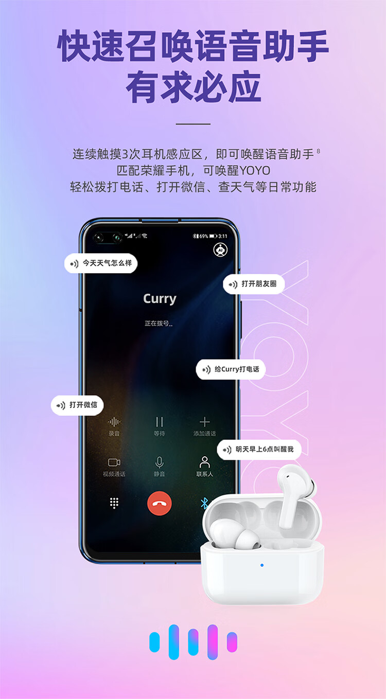 做工质感:华为荣耀品质非常好,做工非常精细。外观很圆,润。 音质音效:音质非常棒,蓝牙。非常好,传输的很远是。 舒适度:耳机带着非常舒服,他有大中小号。 续航能力:两个耳机,经常交替使用。待机,非常长。