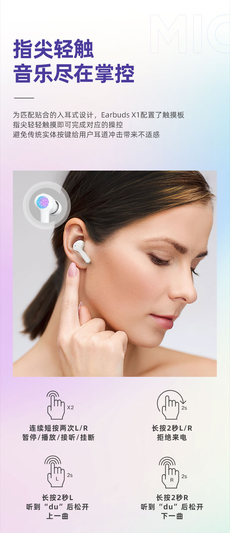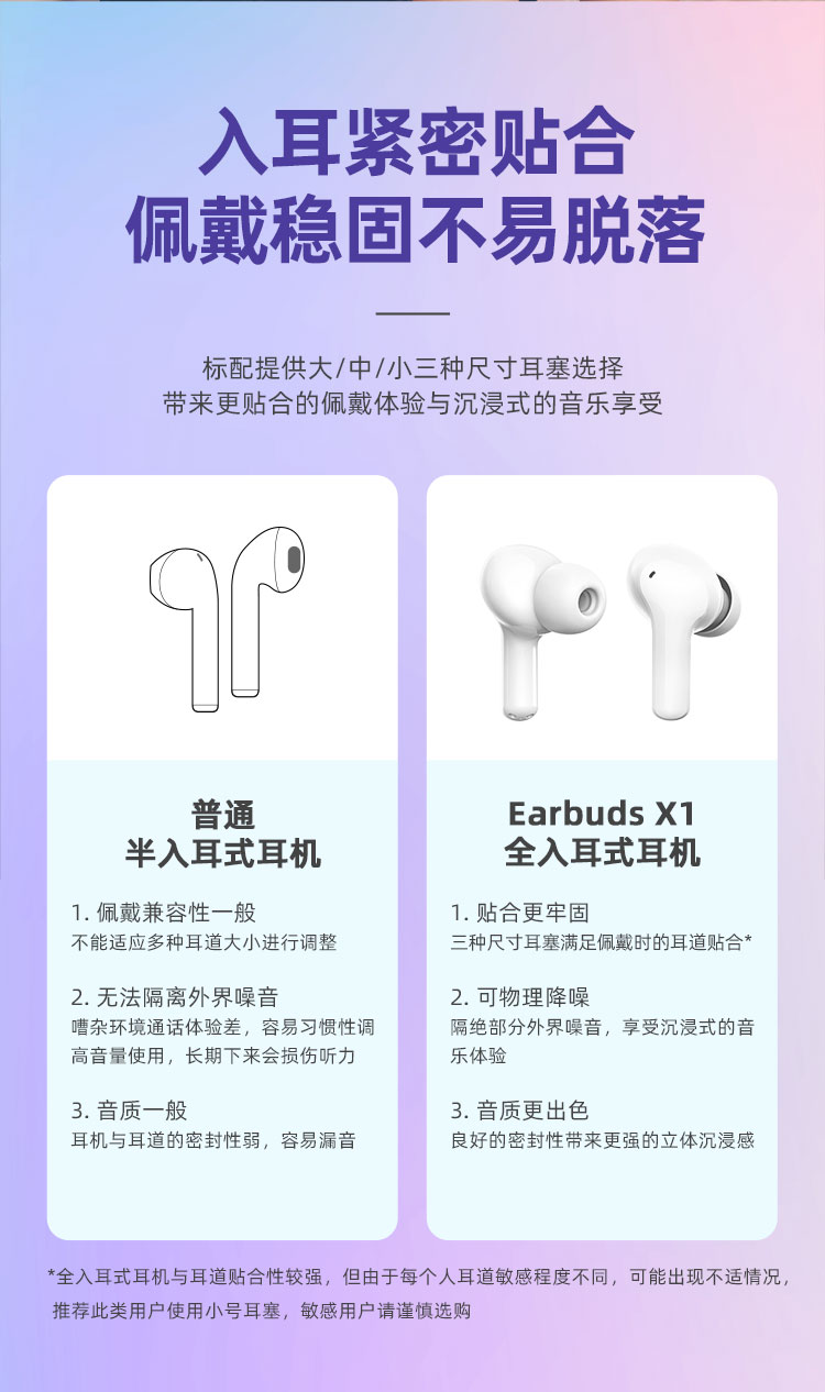 音质音效:非常不错,音质有那种低音炮的音色,偏重低音一点 舒适度:跟我的耳朵??特别合适,很贴合。哪怕是蹦蹦跳跳的话也不用担心都不会掉下来。仿佛就像粘到耳朵上一样,这一点完全不用担心。大家放心购买吧!