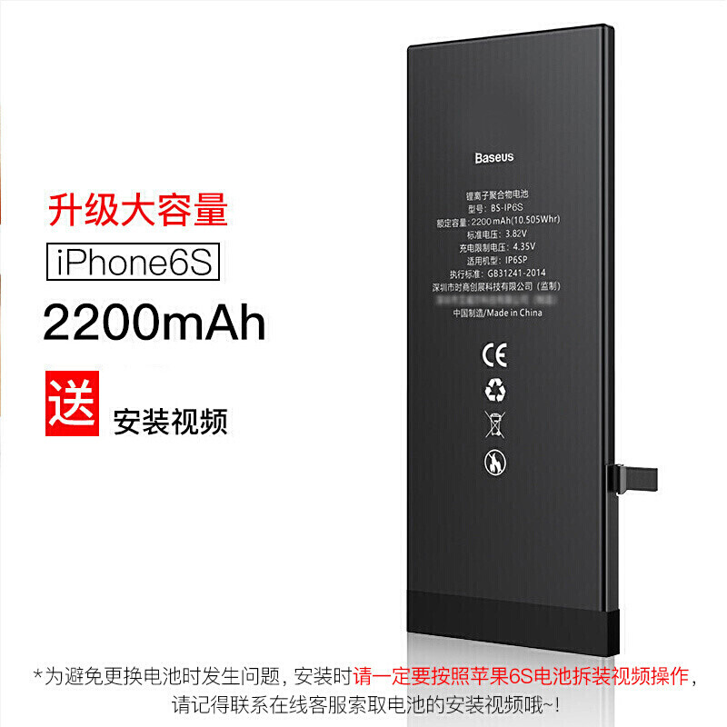 • 产品名称:倍思 苹果手机电池 适用于iphone6s苹果六6s大容量电板换 超大容量苹果6s电池 2200mAh