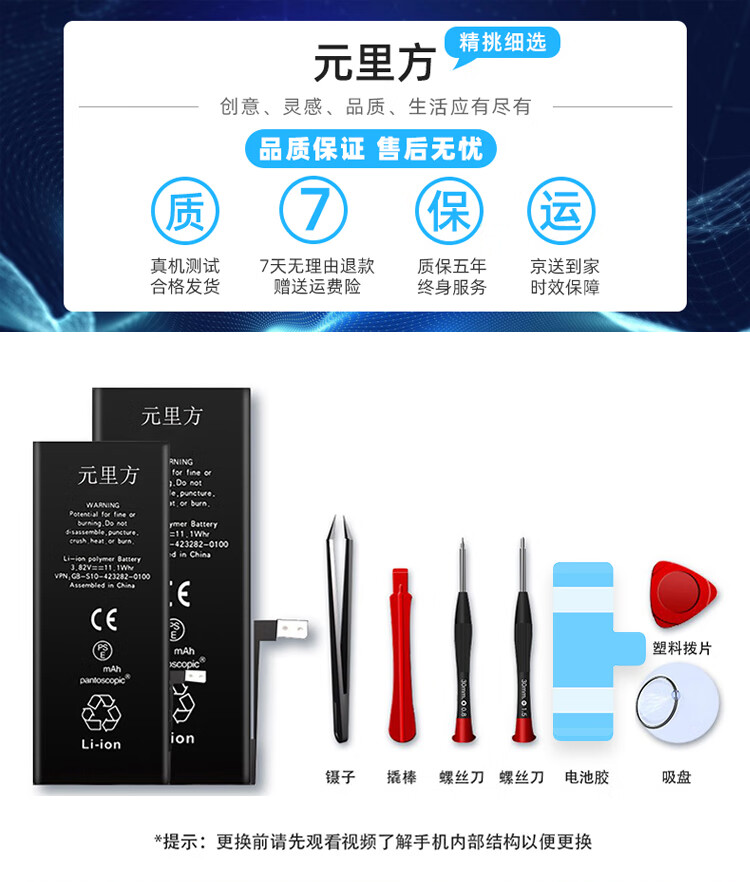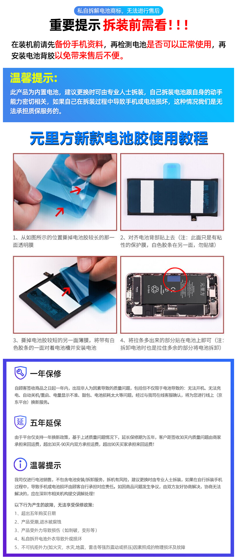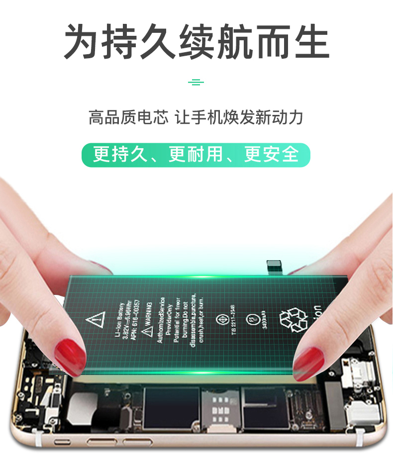 • 产品名称:【大容量】元里方 苹果6s电池适用iphone7/x/8/6/6s plus手机内置大容量电池 苹果6s电池【大容量】2310mAh