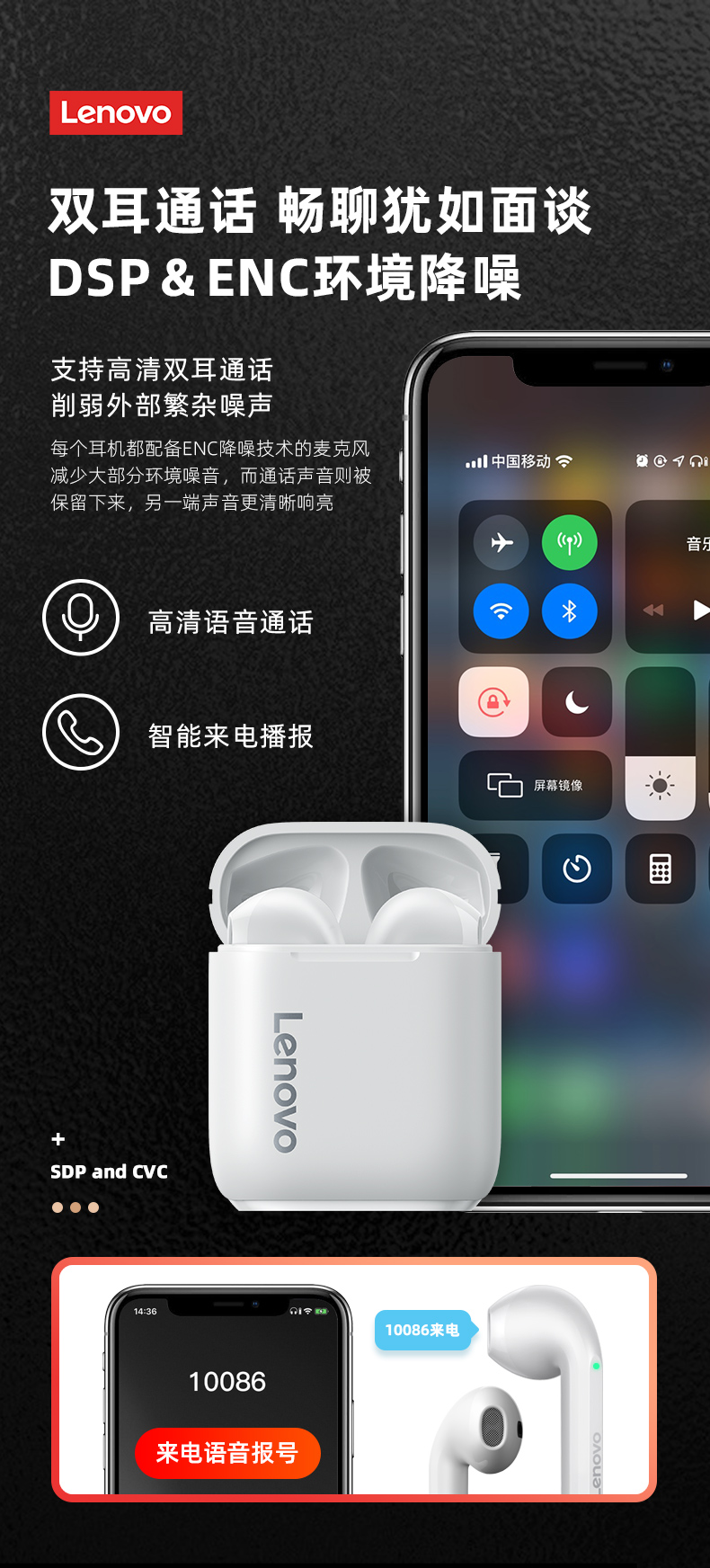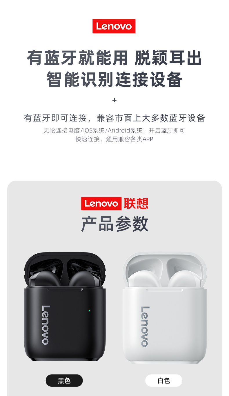 耳机款式很好看,精致做工质感很好,带上后,降噪效果非常明显,贴着耳朵不易松动,续航能力强,小巧又美丽颜色干净,联想大品牌,产品质量有保证,京东送货速度超快,好评!