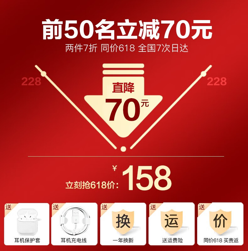 其他特色:非常好的耳机,没有什么贵有贵的道理。和苹果一样的改名太好玩了! 续航能力:电量很足,4小时以上没问题 佩戴感受:感觉不错 戴着耳朵不疼 外观材质:物流很快,到手还以为是AirPods,小巧精致的 声音效果:给弟弟买去听的,他说音质是最好的。