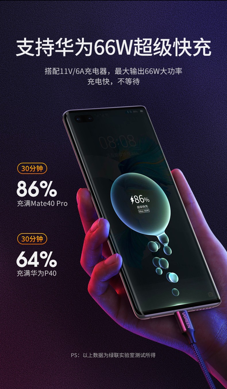 其他特色:完美适配华为原装充电头,支持超级快充,是原装数据线的完美备用件和替换选项,价格比原装数据线便宜尼龙材质也比原装胶线更有质感