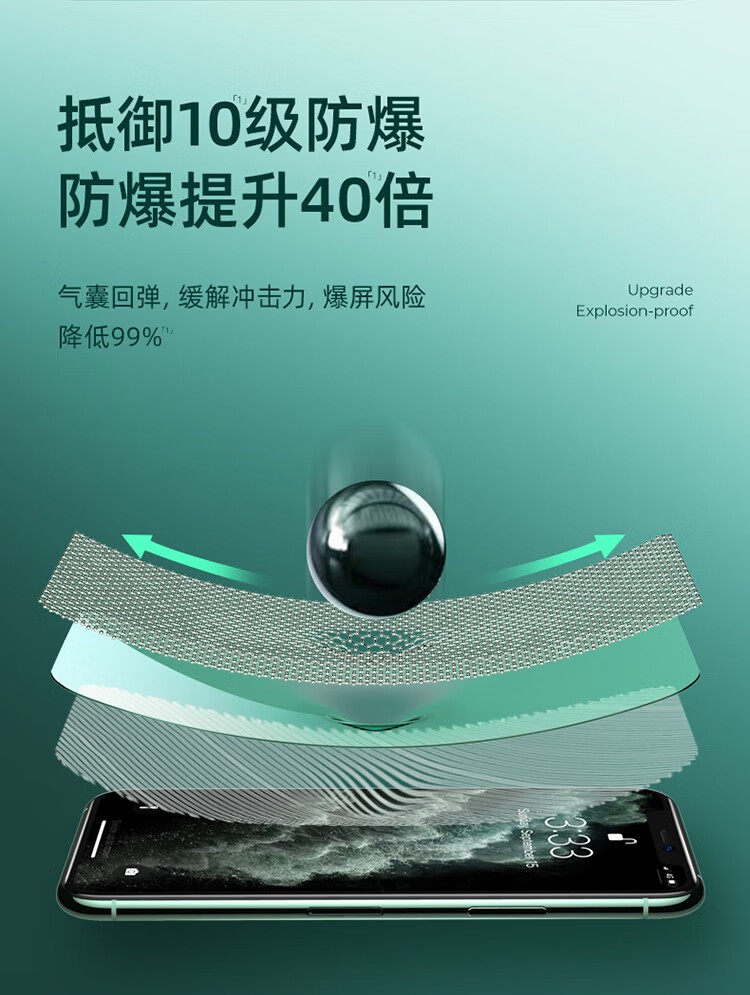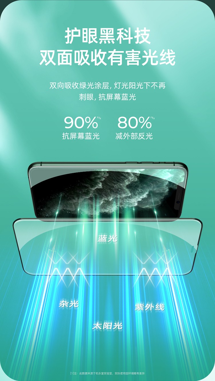 这款绿光膜用着非常好,视觉效果实在是太好了,之前换了一阵闪闪的钻石膜,虽然很好看但是看小说时间长眼睛都累。刷视频是真的舒服,玩游戏手感也好。亮屏的时候看不到绿色,也可以保护眼睛被辐射,做工真的很精致。特别喜欢绿光膜从此爱上了它嘿嘿嘿