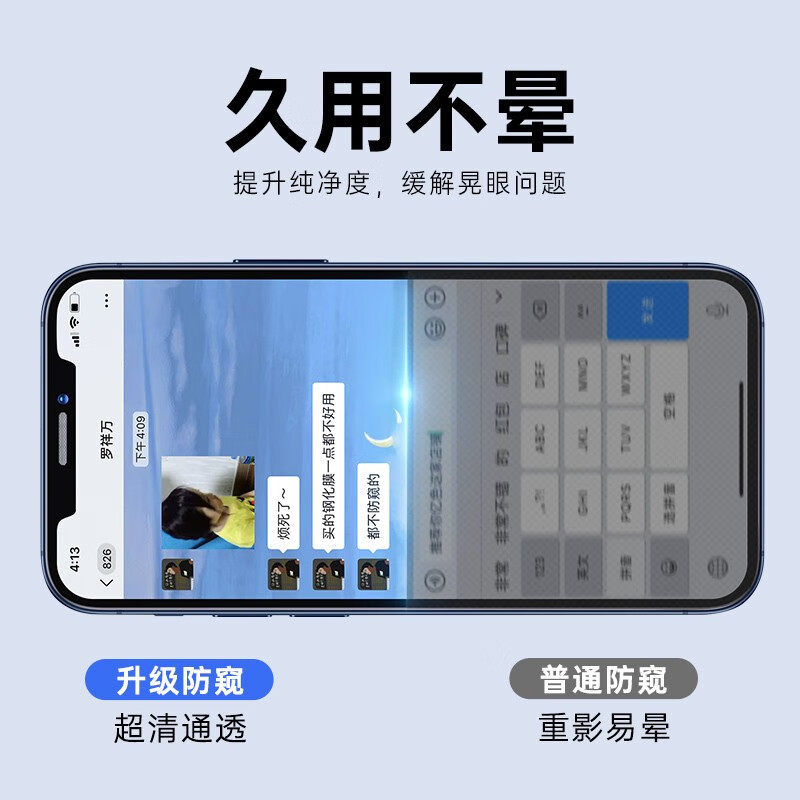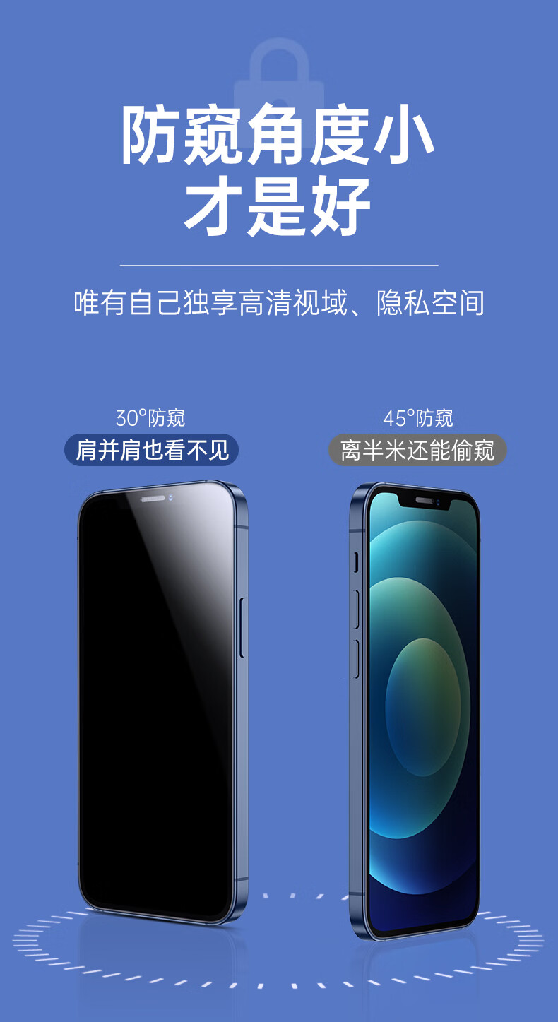 从8p到12p max 这款防窥膜已经回购很多次了,效果没得说,如图所示,左右防窥很给力。 上下就不能防窥,很多人可能问:为什么上下不能防窥……上下要是也防窥的话,那你就没办法正常使用手机了… 总之膜不错,值得购买?