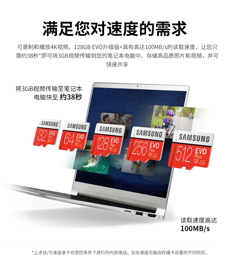 一直用三星的存储卡,多次回购已经能说明所有问题,质量确实很让人放心,用着感觉非常踏实,以前自己也专门测试过三星的存储卡,首先容量还是很足的,读/写速度方面都非常满意,也很耐用,卖家发货也很快,收到后直接就用上了!!