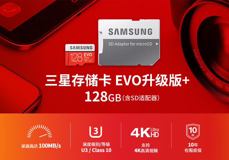 三星的128G的内存卡非常好用,性价比非常的好哦,价格也不会还送了相机SD转换器,也可以给相机使用哦,非常nice.至少买的sd卡只能给相机使用,这次这个可以相机手机都可以用。读取速度也不错,主要是够用了.