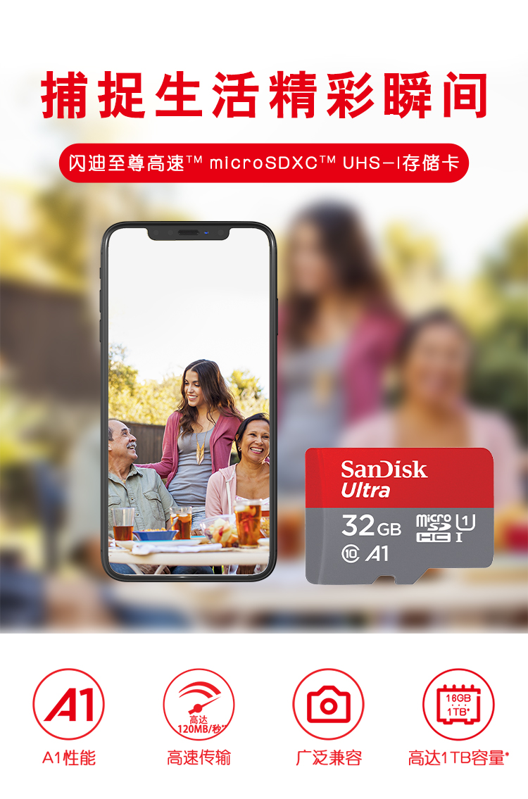 • 产品名称:闪迪(SanDisk)32GB TF(MicroSD)存储卡 U1 C10 A1 至尊高速移动版内存卡 读速120MB/s APP运行更流畅