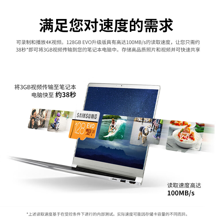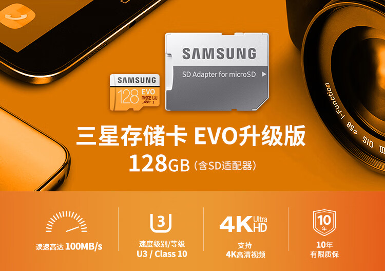 • 产品名称:三星(SAMSUNG)128GB TF(MicroSD)存储卡 U3 4K EVO升级版 高速内存卡 手机平板电脑扩容卡 读速100MB/s