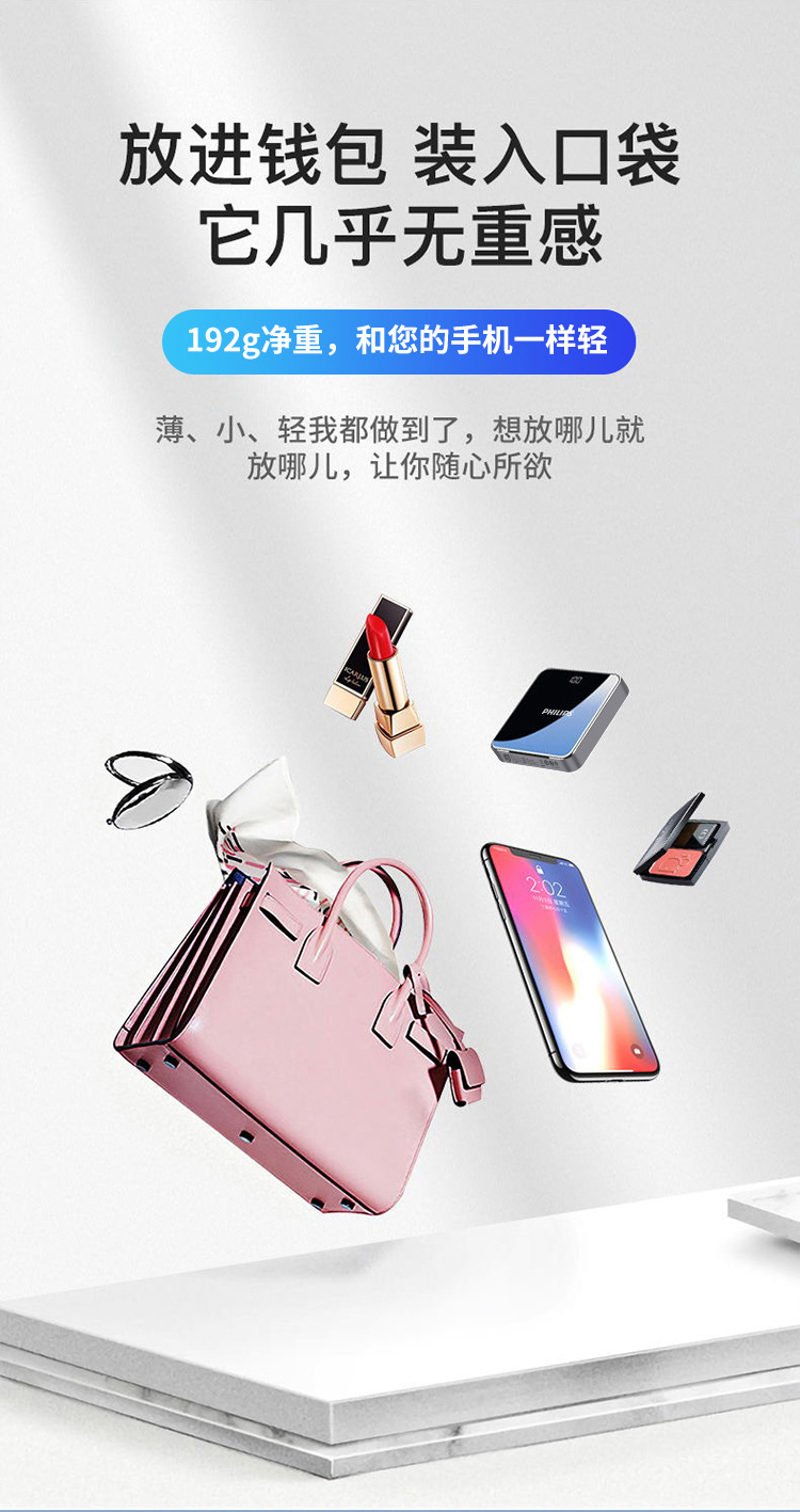 • 功能:电量屏显,轻薄便携,TYPE-C输入