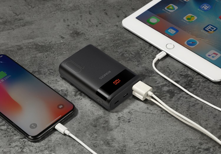 罗马仕Ares10充电宝10000毫安时移动电源超薄小巧迷你双USB输出智能数显苹果安卓Type-C 黑色