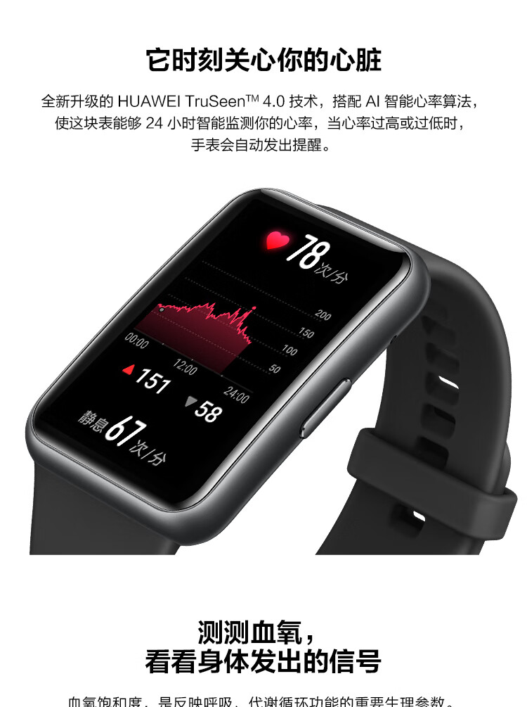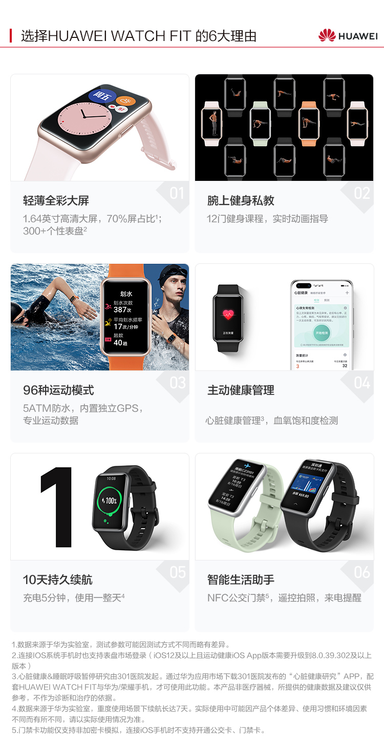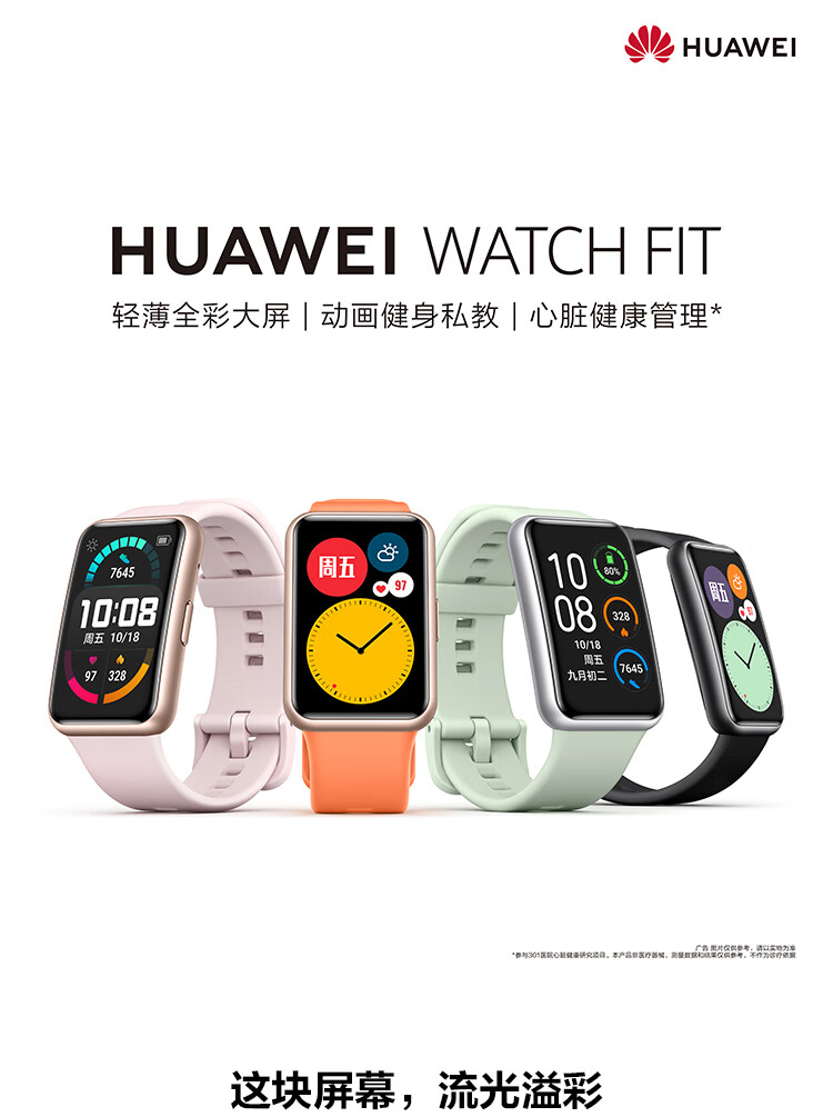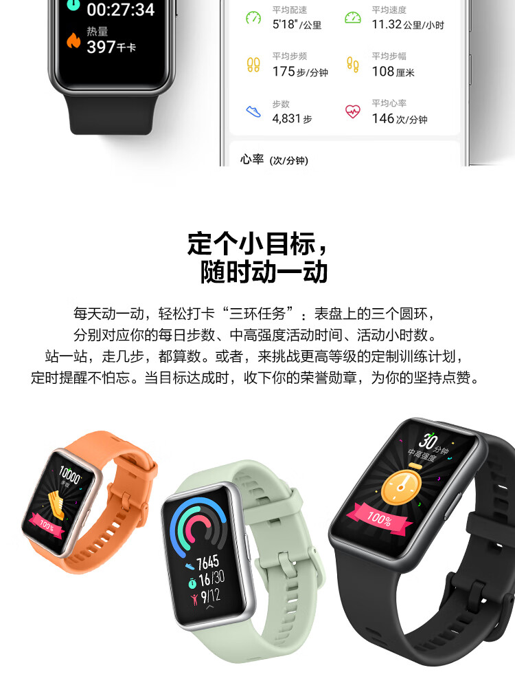 • 产品名称:HUAWEI WATCH FIT 华为手表 运动智能手表方形 时尚轻薄/华为快充/全屏触摸/专业运动/健康管理 曜石黑