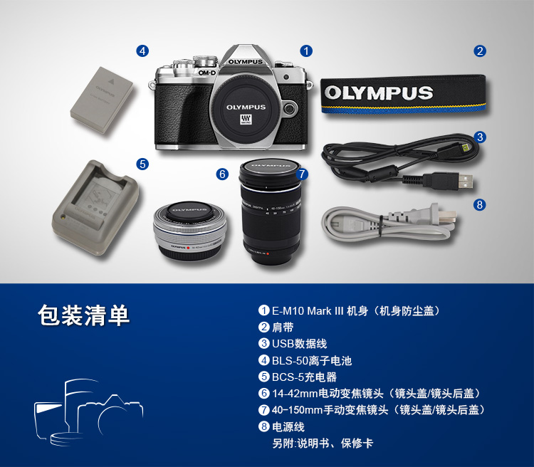 E-M10 Mark III重约 410 g (符合CIPA标准),比同等级别的单反照相机要更小、更轻。轻便的机身,可随用户四处征战。