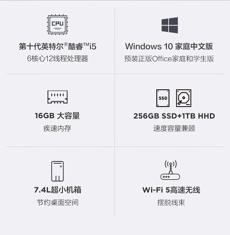 • 产品名称:联想(Lenovo)天逸510S 酷睿版英特尔酷睿i5 台式机电脑整机(i5-10400 16G 1T+256G SSD wifi win10 )23英寸