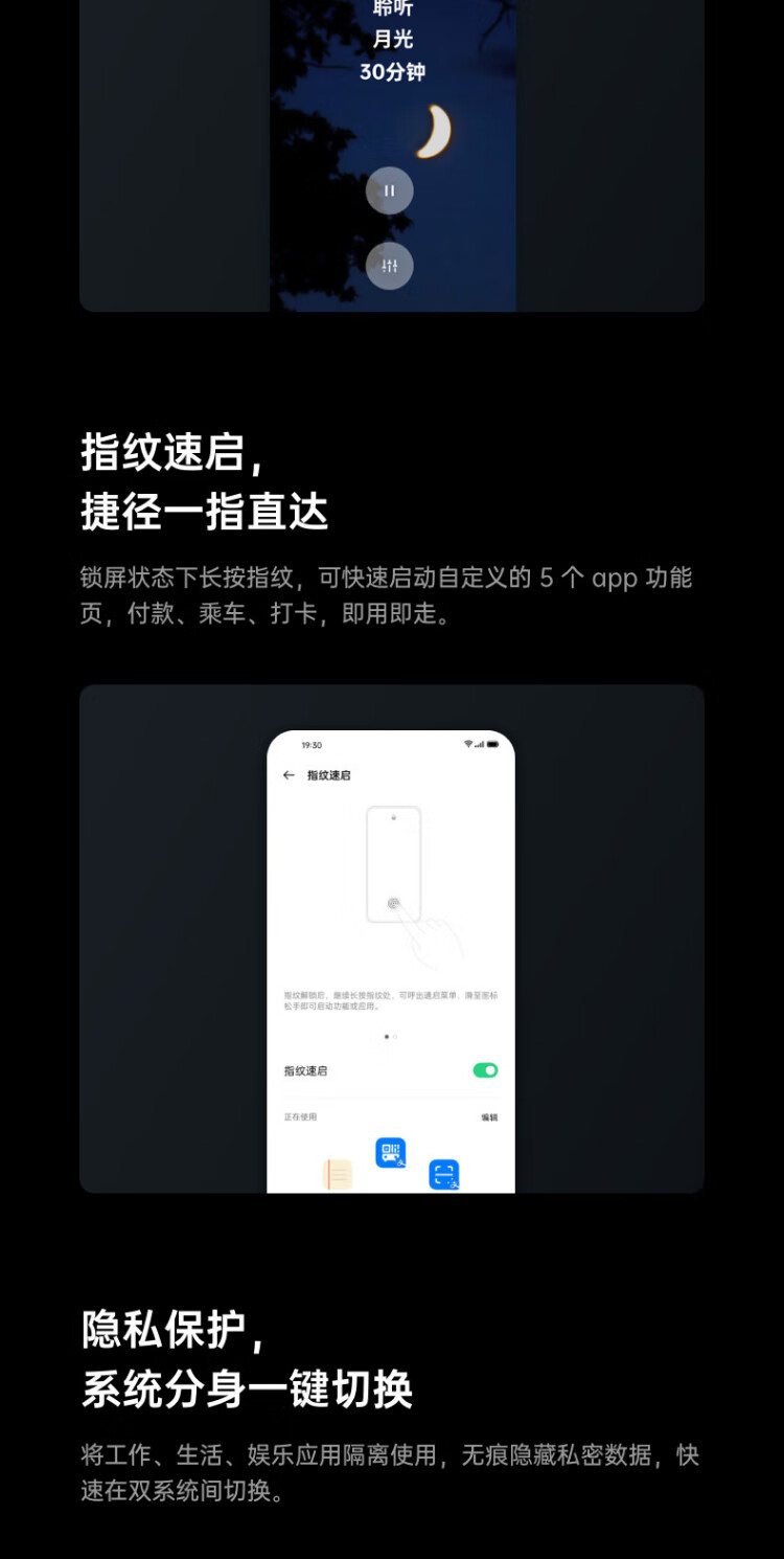 • 机身材质工艺:玻璃机身,热锻工艺,雾蓝、凝白采用哑光一体工艺,镜黑采用OC0工艺,未来流线设计