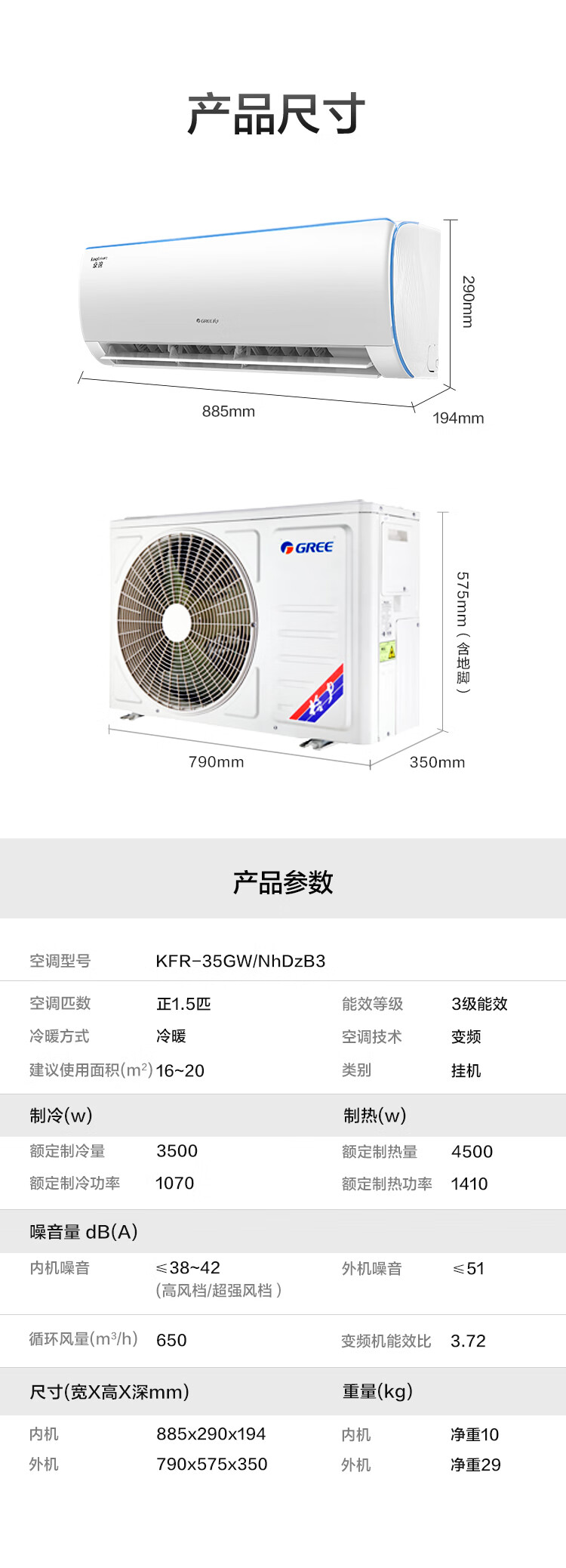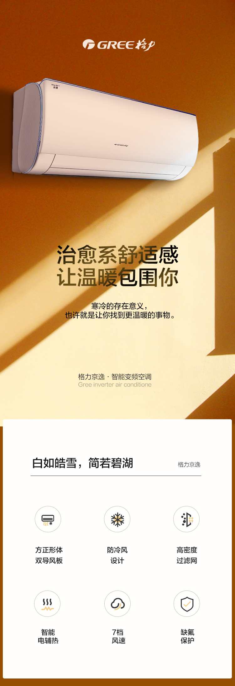 • 产品名称:格力京逸(GREE)正1.5匹 E享舒适 智能睡眠 变频 快速冷暖 壁挂式卧室空调挂机KFR-35GW/NhDzB3以旧换新