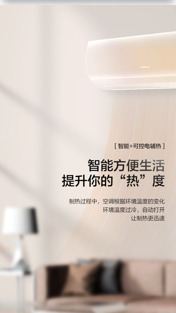 • 电辅加热: 电辅加热是指空调的PTC热敏电阻电辅热技术。采用了PTC电辅热技术的空调,能够自动根据房间温度的变化以及室内机风量的大小而改变发热量,从而恰到好处地调节室内温度,达到迅速、强劲制热的目的。 支持电辅加热